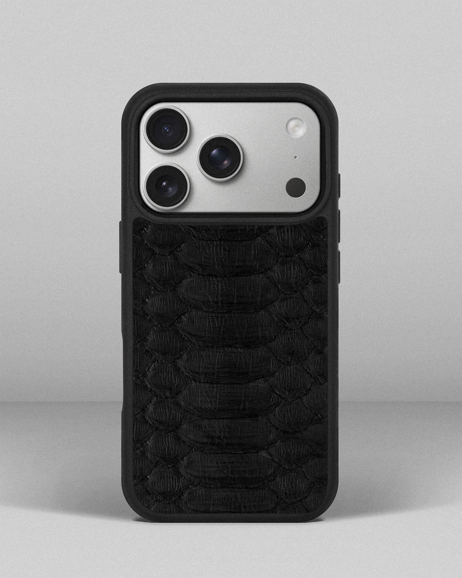 Чохол із чорної шкіри пітона з широкими лусочками для iPhone 17 Pro