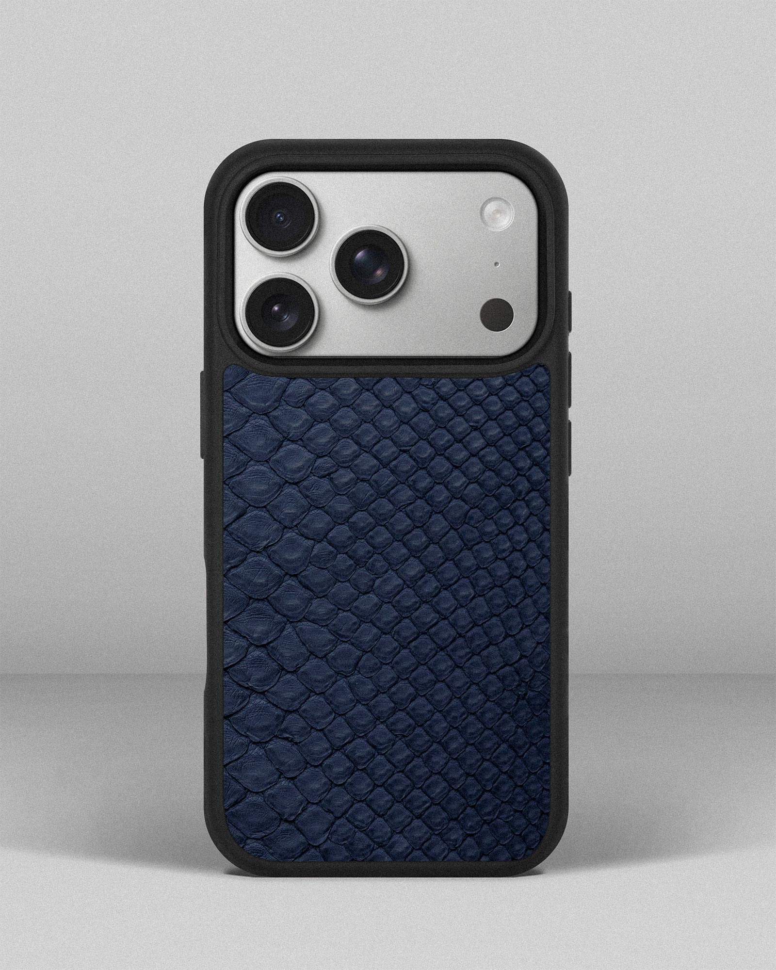 Чохол із темно-синьої шкіри пітона з дрібними лусочками для iPhone 17 Pro є не лише функціональним аксесуаром, але й виразом вашого стилю та особистості. Це вдале поєднання елегантності, вишуканості та захисту, яке дозволяє вам підкреслити свою індивідуальність і впевненість.